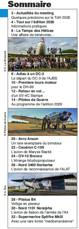 De l’Avro Anson au Spifire Mk.IX unique dans sa livrée « méditerrannée » et qui devrait se confronter dans un dogfight mémorable avec le Bf109E4/N, le plateau 2026 vous tiendra encore en haleine pendant 6h.